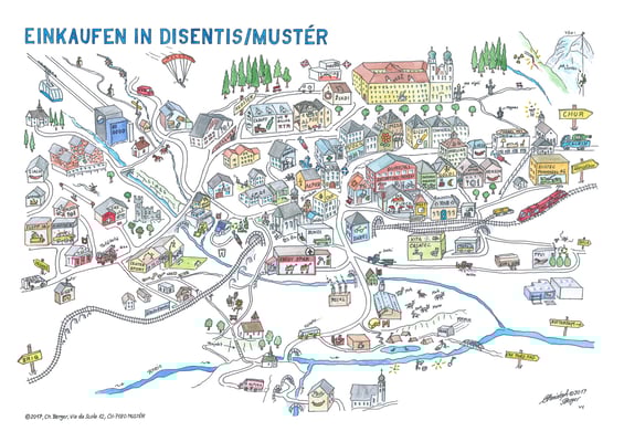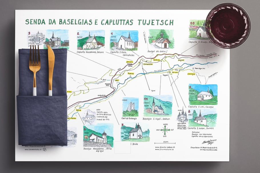 Unsere Tischsets aus der Feder von Christoph Berger aus Disentis sind eine perfekte regionale Werbung.
